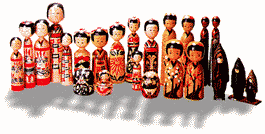 【こけし】 自由闊達な筆致が特徴の湯沢のこけしたち。その素朴なまなざしと清楚さが愛好家の人気を集めています。 |